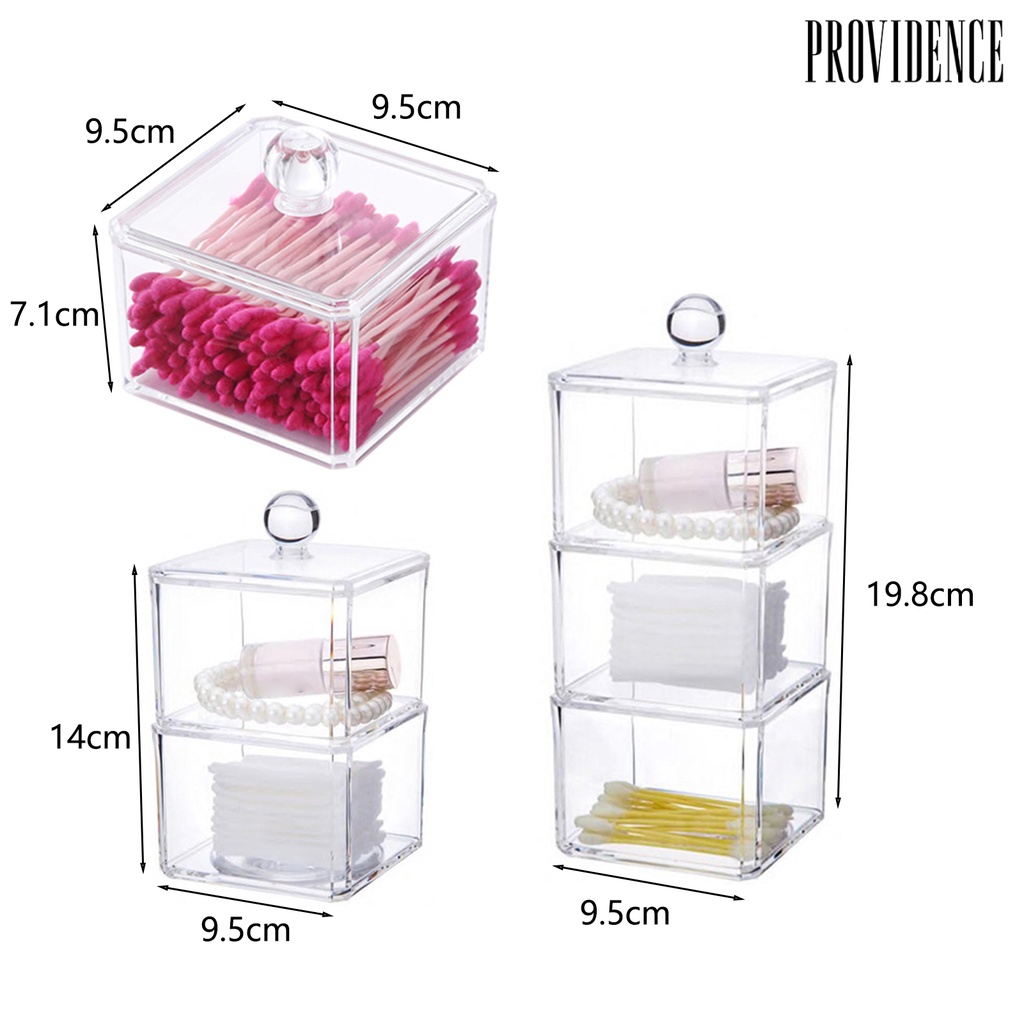 Providence 1set Makeup Kotak Kapas Transparan Terlihat Tahan Debu Mudah Di Isi Ulang Dengan Tutup Desktop Kutek Cotton Swab Organizer Perhiasan Digunakan Di Rumah