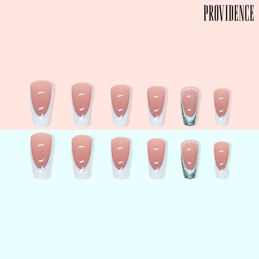Providence 24Pcs/Set Tips Kuku Tidak Bahaya Dilepas Dekorasi Yang Indah Pengerjaan Halus DIY Eye-catching Balet French Glitter Nail Art Patch Rumah Tangga Pasokan
