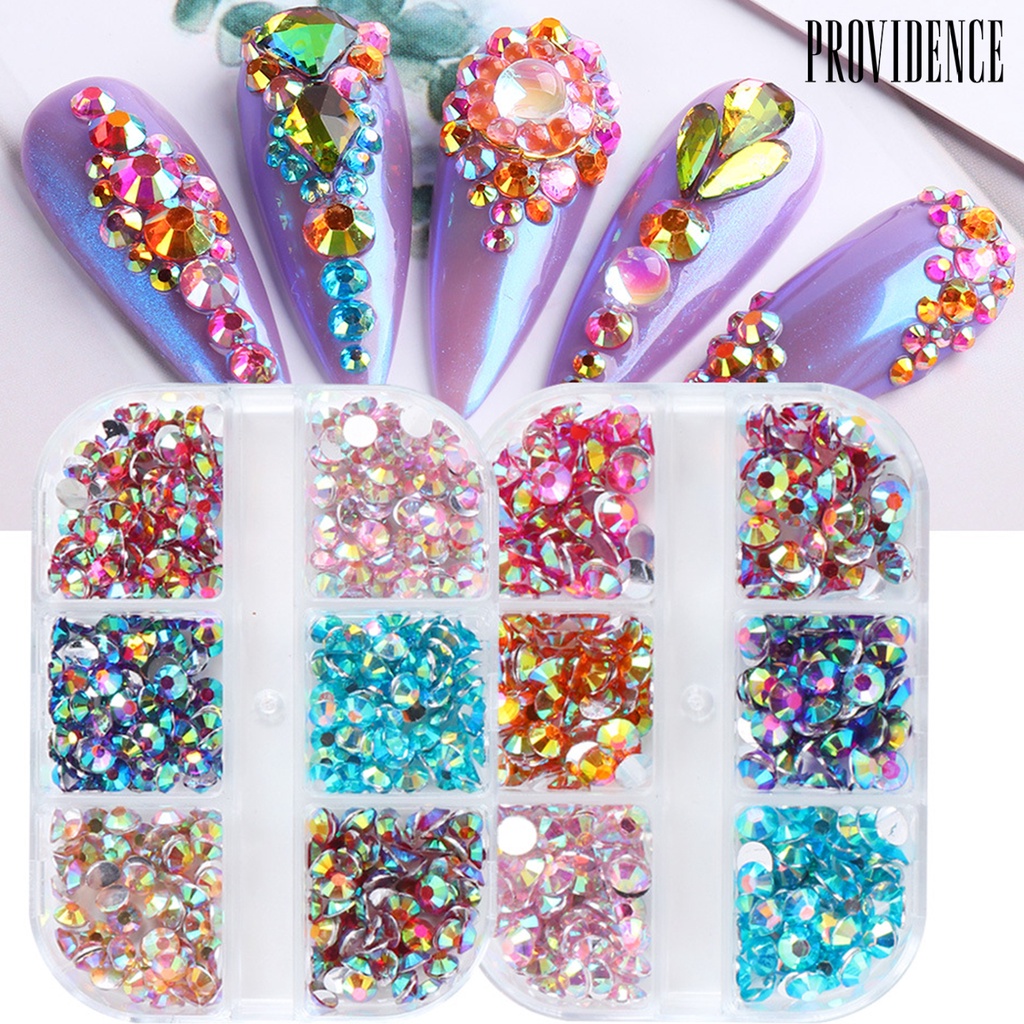 Perawatan & Kecantikan > Aksesoris Make Up > Aksesoris Make Up Lainnya > Providence 6Grids/Box Flat Back Nail Art Rhinestone Non-Drop Easily Stick Clear Colorful Flat Bottom DIY Nail Art 3D Decoration for Manicure
