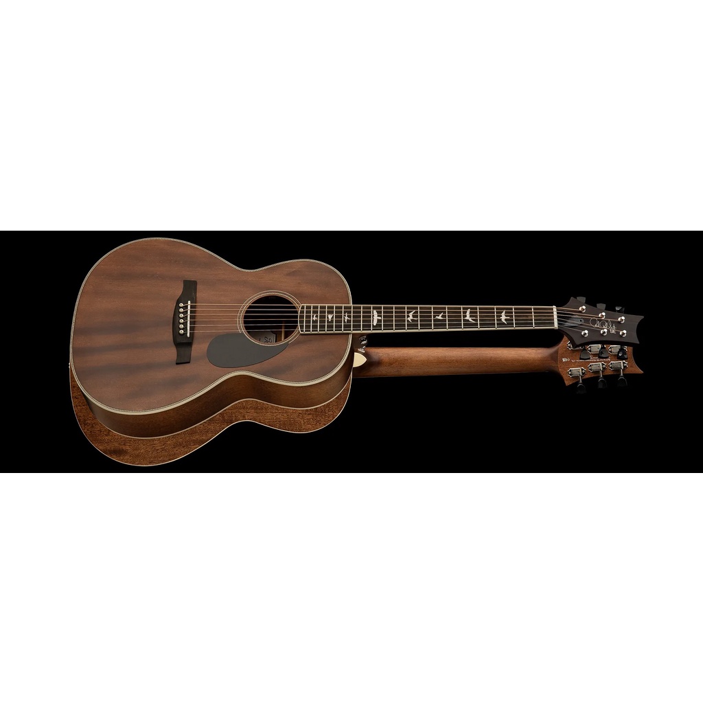 The PRS SE P20 is a parlor-sized acoustic with a big voice. Boasting traditional parlor features like sweet, midrange tone, historic vibe, and easy portability, the PRS SE P20 also brings a unique voice to players. The PRS hybrid “X”/Classical bracing locks down the back and sides while allowing the top to freely vibrate, allowing the PRS SE P20 to project with even, bold tone, while the all-mahogany construction provides an organic warmth to the guitar. Its smaller size keeps playing fun and comfortable for hours, so whether writing, recording, or performing the P20 is sure to impress.