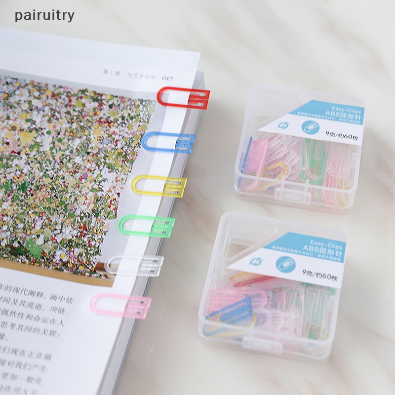 Buku & Alat Tulis > Perlengkapan Sekolah & Kantor > Klip Kertas, Push Pin, & Paku Payung > Prt 60pcs /box ABS Klip Kertas Mini Warna-Warni Kawaii Stationery Candy Color Clear Binder Klip Foto Tiket Notes Surat Paper Clip PRT