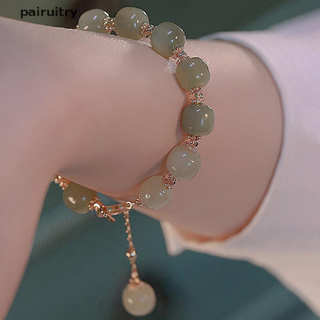 Prt Vintage Cahaya Imitasi Hetian Jade Beaded Charm Gelang Pesta Santai Mutiara Zirkon Perhiasan Fashion Untuk Wanita Hadiah PRT