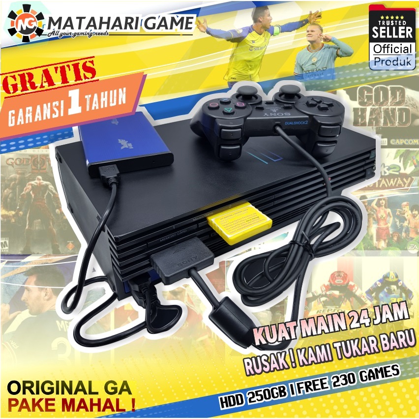 ISI LENGKAP PAKET : - 1 UNIT PLAYTSATION 2 { Seri 5 | Seri 3 | Seri 1 } - 1 HARDISK EXTERNAL - 1 MC BOOTING ( Software ) - 1 KABEL AV - 1 KABEL POWER - 1 KARTU GARANSI TOKO - STIK GETAR - TIDAK BISA KASET / ONLY HARDISK