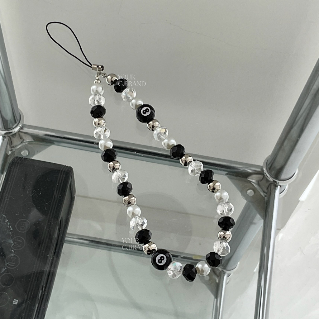 Detail ⋆˙⟡[ PS - 624 ] [ READY STOCK ]⟡˙⋆ Universal silvery phone strap phone charm keychain with black beads tali handphone silver gaya hiphop handmade aesthetic