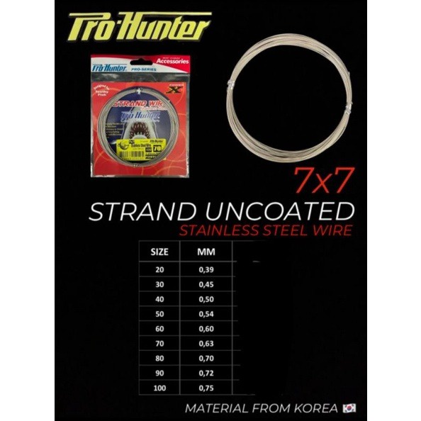 PRO HUNTER 7X7 STRAND WIRE UNCOATED STAINLESS STEEL SENAR SELING KAWAT SELLING