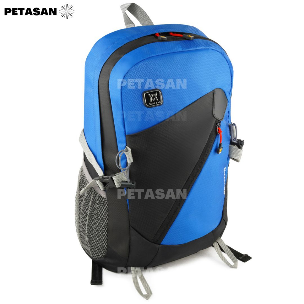 Raincover / Pelindung hujan tersedia di resleting bagian bawah tas front opening pocket with zipper Kuat dan tahan lama Kombinasi warna elegan 2 kantong sampingmeshdenganelastic closure Adjustable shoulder strap Cooling system Auto Balance Nylon Strap High strength shoulder strap Size 30 x 45 x 16 Cm