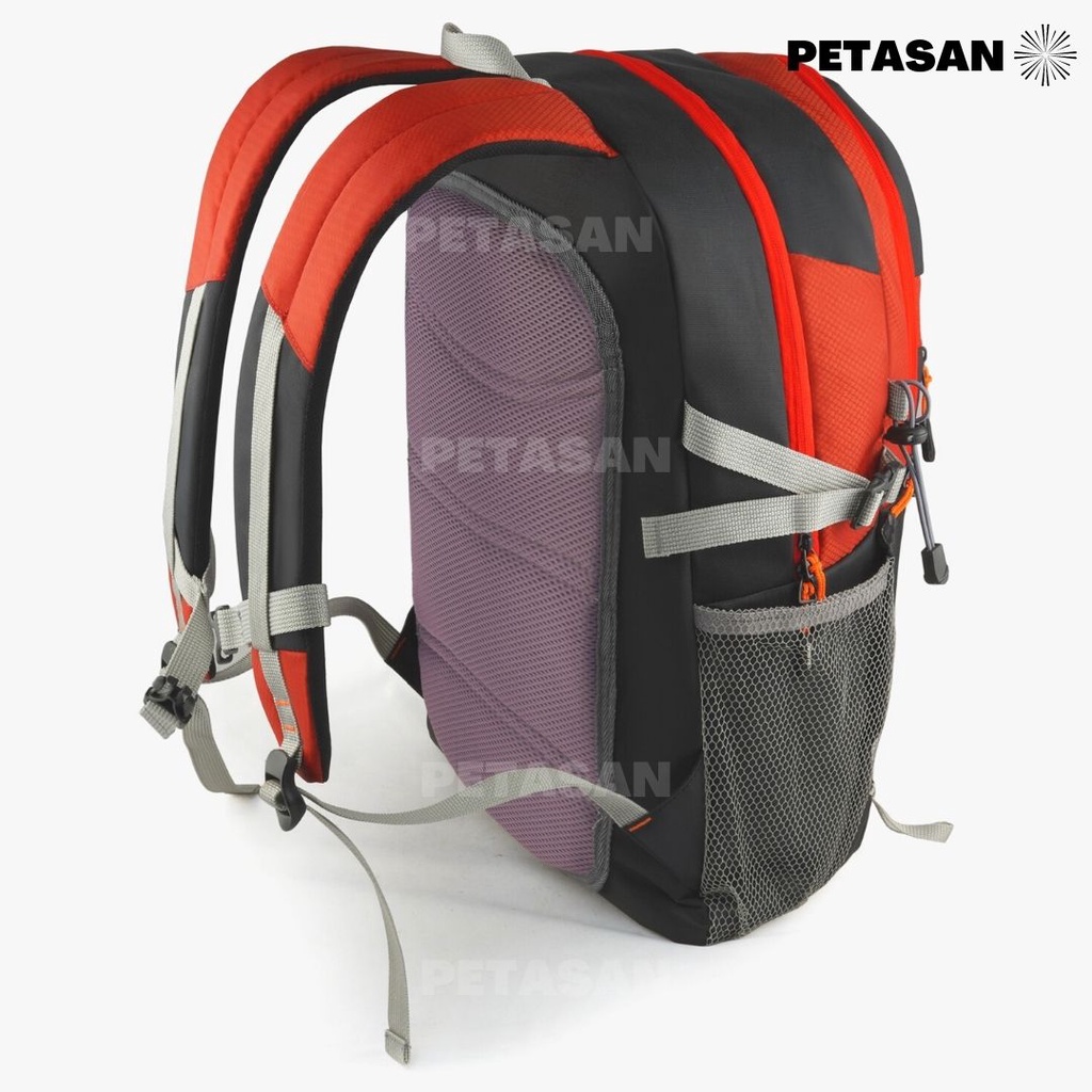 Raincover / Pelindung hujan tersedia di resleting bagian bawah tas 3 RUANG Kuat dan tahan lama Kombinasi warna hitam dan merah 2 kantong samping mesh dengan elastic closure Adjustable shoulder strap Cooling system Luxury Void Design Auto Balance Nylon Strap High strength shoulder strap Size 45 x 30 x 16 Cm