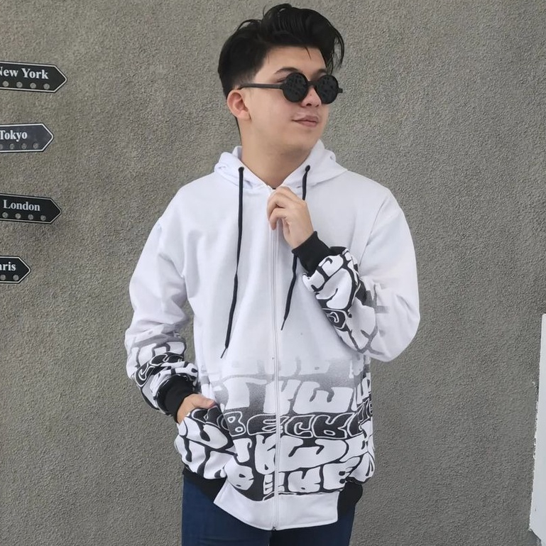 Detail Public - Zipper White Print - Jaket Zipper Unisex Kekinian