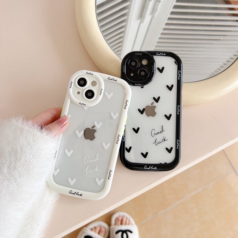 Handphone & Aksesoris > Casing & Skin > Casing & Skin Handphone > Puff Case iPhone 11 12 13 14 Pro Max 14 Plus Pretty Women's Cute Gifts Soft Casing Cover Black White Love Lucky