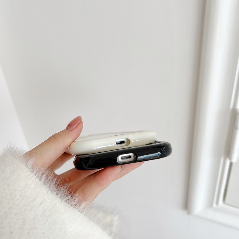 🔔【Ready Stock】 Puff Case iPhone 11 12 13 14 Pro Max 14 Plus Pretty Women's Cute Gifts Soft Casing Cover Black White Love Lucky