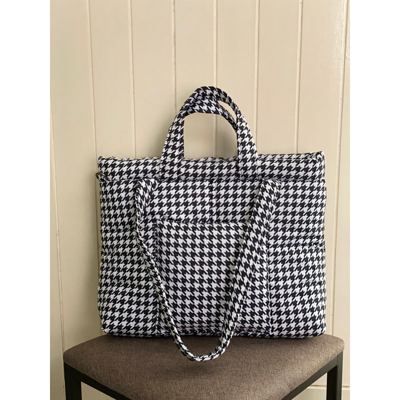 imeela puffbag printed Polka & plaid Size 40x30x10cm Tali 2 style Bahan: nylon glosy Non Waterproof Pakai Resleting Muat laptop 14-15,5 inch Muat barang banyak