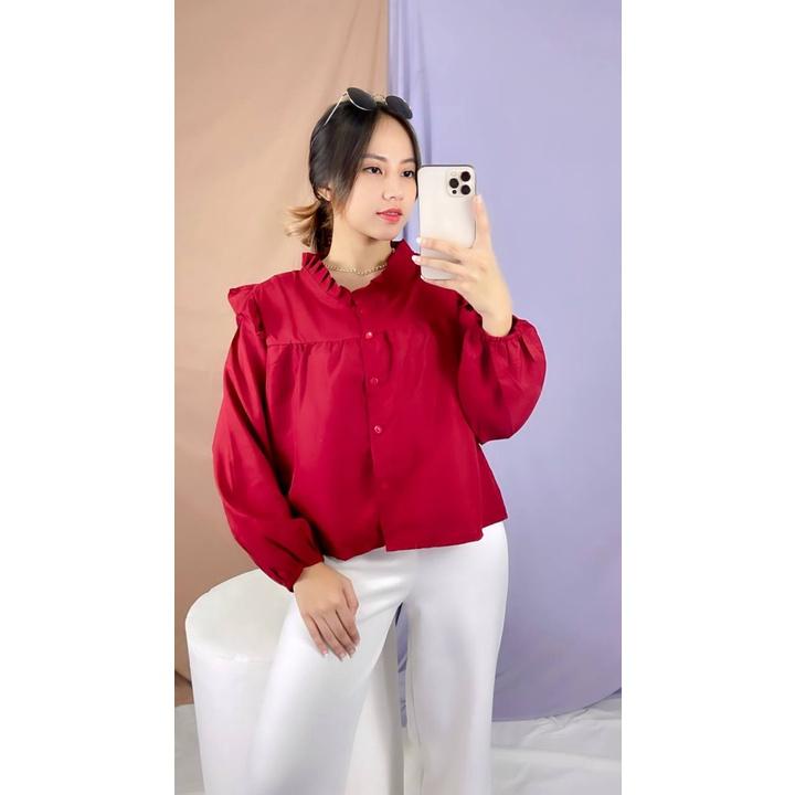 Detail PUFFY BLOUSE ZS 771 BLUS WANITA KOREA STYLE LENGAN PANJANG CRINKLE CROP