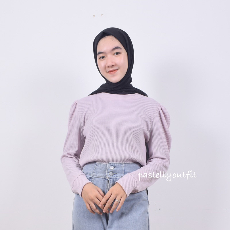 Detail Puffy Shoulder Top / Kaos Wafer Lengan Panjang Model Balon