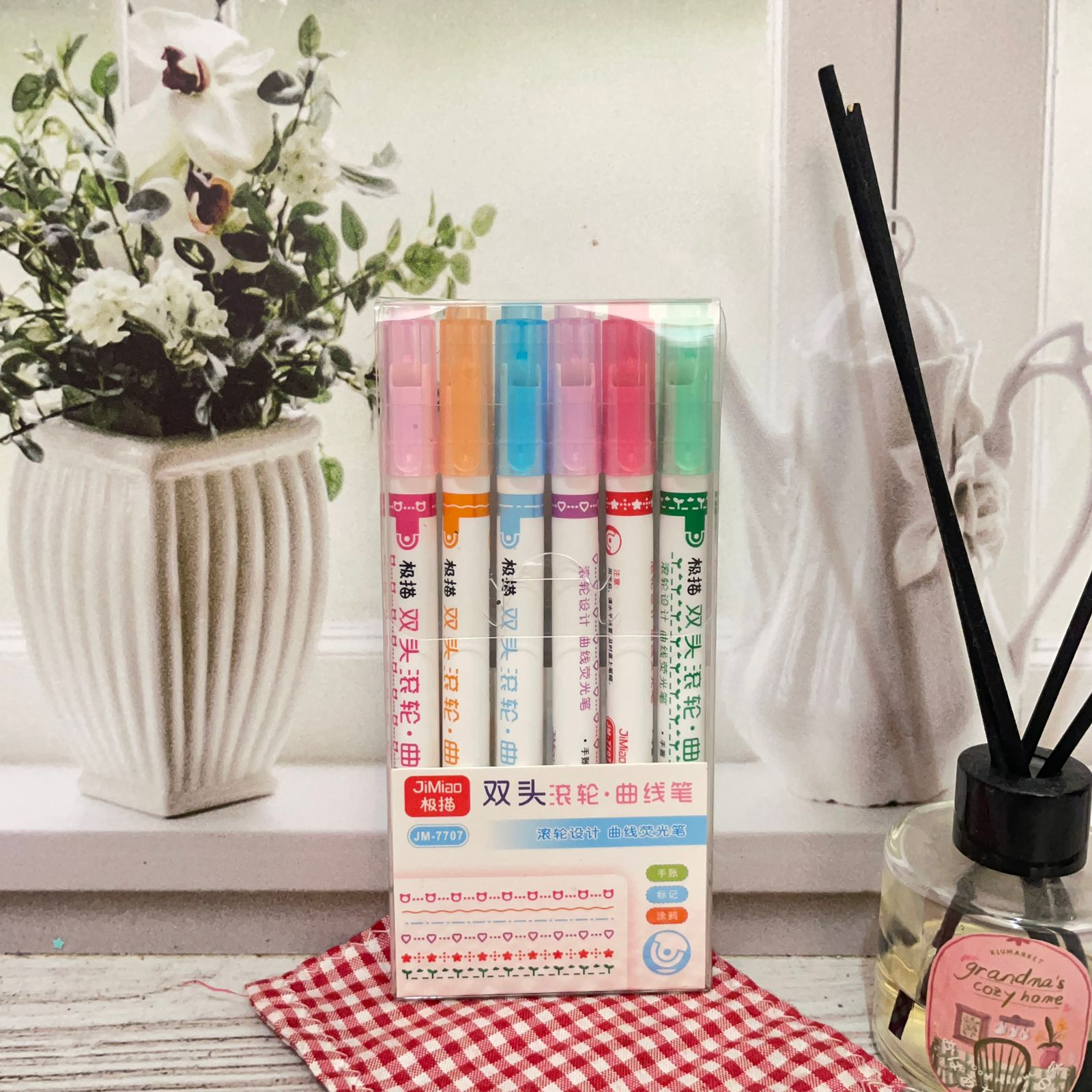 Pulpen Linear 1 Set isi 6 Pieces Warna JM-7707 / Pen Garis Motif Lucu / Alat Tulis Sekolah dan Kantor Kekinian Unik Harga Murah Bisa COD