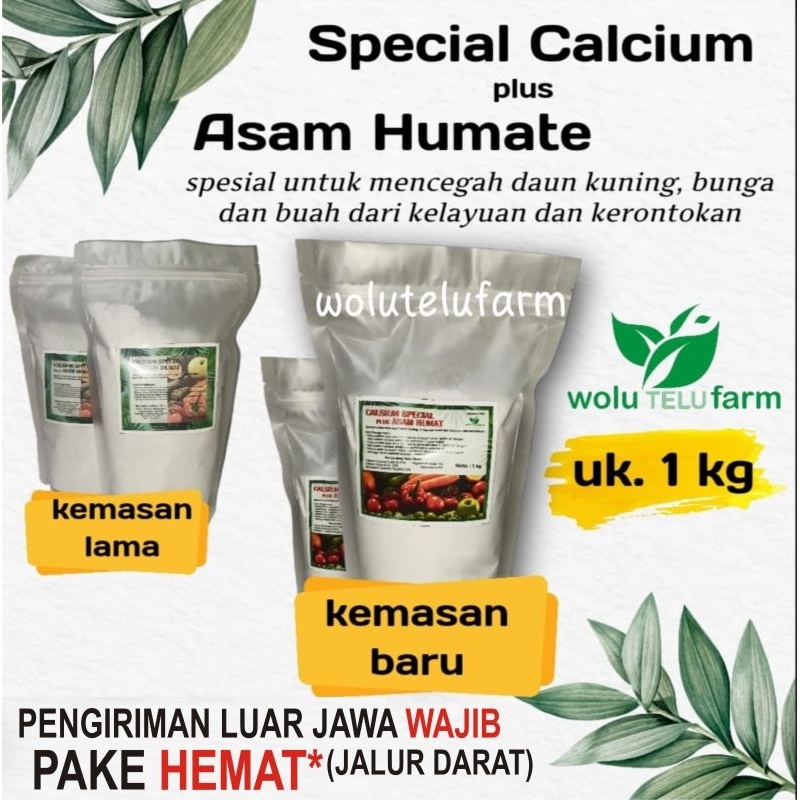 pupuk kalsium spesial plus asam humate, spesial untuk mencegah daun kuning, bunga dan buah dari kelayuan, dan kerontokan. untuk pertanian, bisa dikocor maupun di semprotkan pada tanaman, untuk memenuhi unsur kalsium dan magnesium pada tanaman.