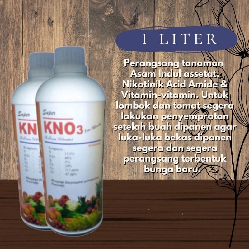 Isi bersih : 1liter kno3 merah cair dan kno3 putih cair pupuk super premium kwalitas super untuk tanaman. Bedanya kno3 merah dan putih adalah. ■Kno3 merah pupuk tanaman di masa vegetatif. Kandungan kno3 merah : N : 17% Ca : 20% K2O : 14% Cu : 112ppm B : 2% Zn : 42ppm (Dilengkapi dengan ZPT Vegetatif) ■Kno3 putih pupuk tanaman di masa generatif. Kandungan Kno3 Putih. N : 15.8% Ca : 20% K2O : 46% Cu : 112ppm B : 2% Zn : 42ppm