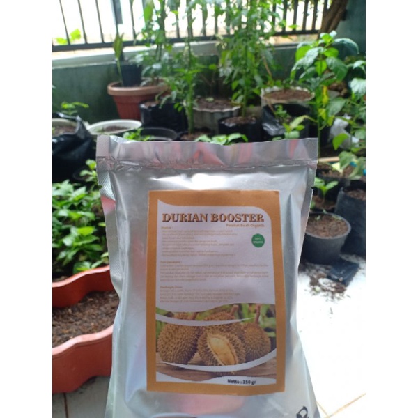 Pupuk Organik Booster Durian Perangsang Buah Serbuk Terbaik Ampuh Agar Cepat Berbuah Lebat adalah Booster durian, Perangsang durian, Boster durian, pupuk durian Pupuk multi mikroba yang mengandung nutrisi hara mikro, makro, dan senyawa organik untuk kesuburan tanaman sehingga akan meningkatkan kuantitas dan kualita hasil penen. Manfaat yang di dapat jika memakai pupuk ini adalah
