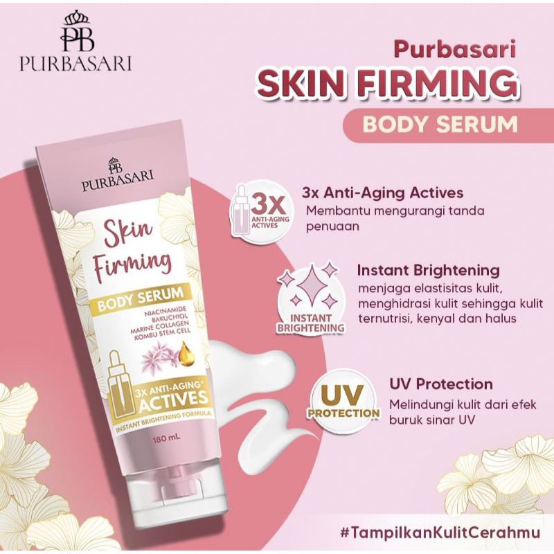 PURBASARI Body Serum Skin Firming Dengan aroma floral yang segar dan tahan lama, Purbasari Skin Firming Body Serum membantu mengurangi tanda penuaan dan memberikan efek instant brightening pada kulit.