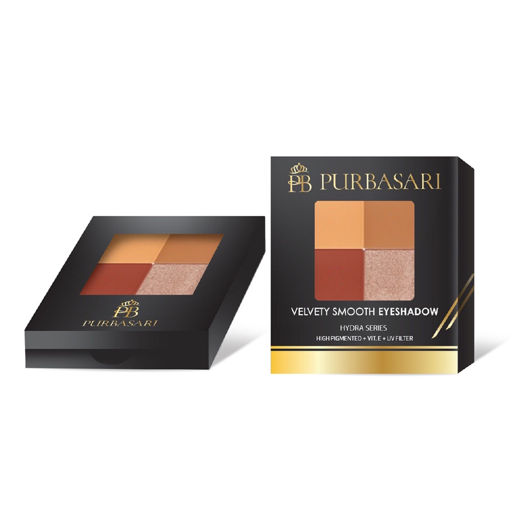 Purbasari Velvety Smooth Eyeshadow adalah palet eyeshadow pressed powder yang terdiri dari kombinasi 4 warna menarik dengan hasil akhir matte dan shimmer. Diformulasi dengan UV Filter, Vitamin E, dan teknologi micro pigment halus yang lembut pada mata dan mudah diaplikasikan