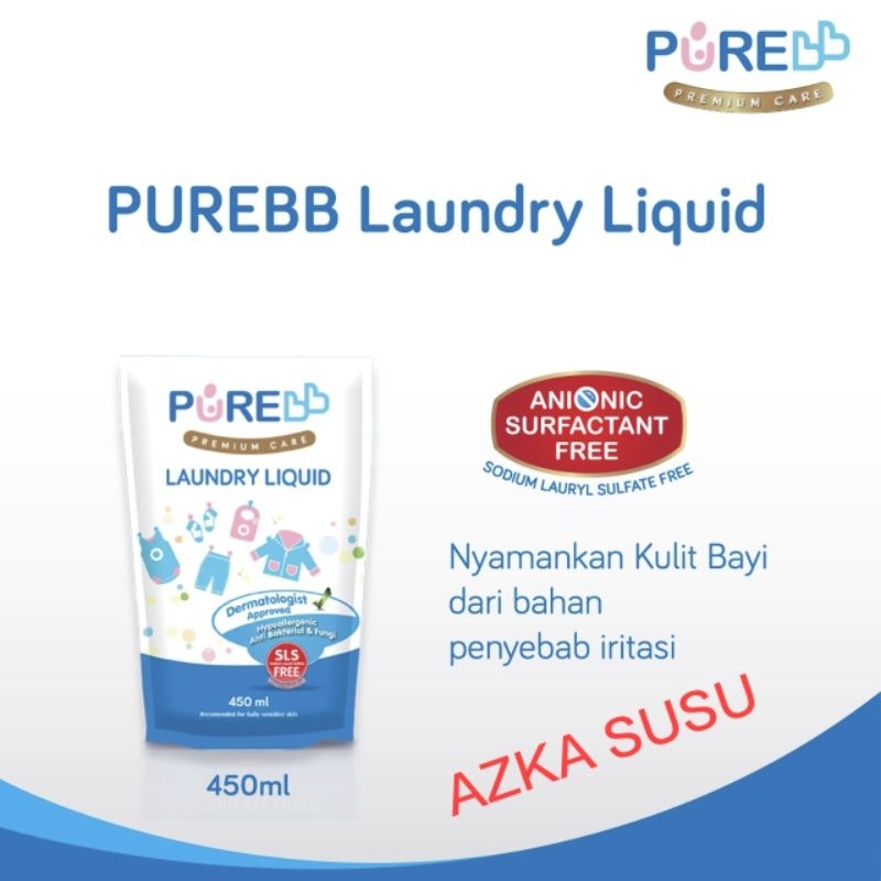 Pure Baby Laundry Liquid adalah cairan pembersih pakaian bayi dengan formulasi bebas detergen (Sodium Lauryl Sulphate Free). Membersihkan dan mengangkat kotoran pada pakaian bayi dengan kandungan bahan mild. Dilengkapi dengan ekstrak Aloe Vera untuk melembutkan. Aman untuk kulit bayi yang sensitif. Dilengkapi dengan Anti Bacterial dan Anti Fungi.