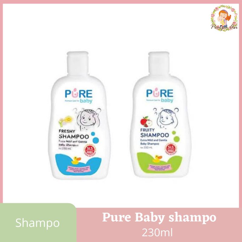 Pure Baby Shampoo Pure Baby Shampoo diformulasikan dengan bahan natural dengan menggunakan standar Europe Low Hazard 0-2 dan dilengkapi dengan Pro Vit B-5, Ph 5.5, Extra Seledri, coconut, and aloe vera. Purebaby sangat aman bagi bayi karena tidak menggunakan bahan Detergen SLS, Paraben, alkohol, maupun pewangi sintetis
