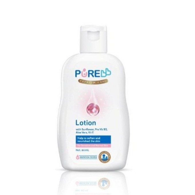 PUREBB Lotion adalah lotion perawatan kulit tubuh secara menyeluruh untuk bayi bayi baru lahir dengan triple action (menutrisi, meregenerasi,menyejukkan) kulit sehingga cocok untuk kulit normal.