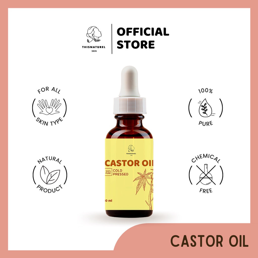 Castor oil diekstrak dari biji tanaman castor. Castor oil merupakan carrier oil yang paling bagus untuk menumbuhkan rambut dan membuat akar rambut lebih kuat sehingga rambut lebih tebal dan sehat. Hal ini karena castor oil memiliki banyak nutrisi yang sangat bagus untuk akar rambut, seperti omega 6 essential fatty acids dan vitamin E. Kandungan anti-bakteri nya juga bagus untuk mengatasi ketombe dan infeksi pada kulit kepala, sehingga kulit kepala lebih sehat. Castor oil dapat dioles pada kulit kepala, dan juga aman digunakan pada alis dan bulu mata.