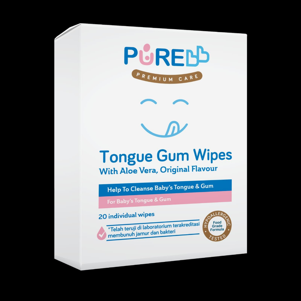 PureBB Tongue & Gum Wipes adalah tisu basah Higienis tanpa Alkoho dan tanpa Pemanis yang dikemas secara individual sachet & diformulasikan dengan teknologi Food Grade untuk membersihkan Gusi & Lidah Bayi dan mengurangi serta menghambat pertumbuhan jamur yang biasanya ditandai dengan adanya bercak putih di lidah bayi karena ASI atau Susu Formula