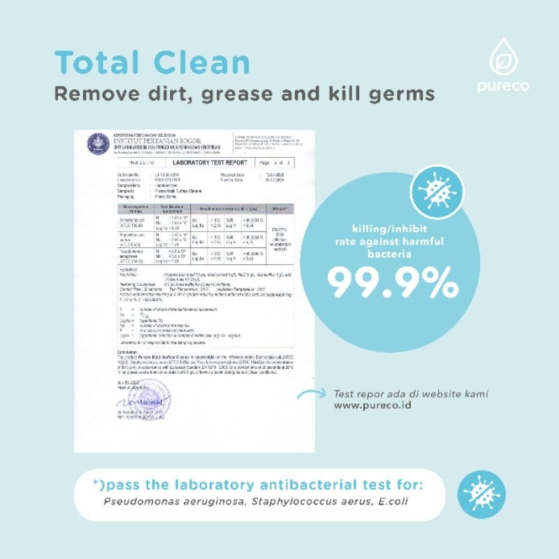 2. Pureco is formulated Without Toxic Chemical Pureco tidak menggunakan bahan kimia yang dapat membahayakan manusia dan lingkungan (Pureco diformulasikan tanpa SLS, Paraben, Pewarna, Chlorin, Phospate, Triclosan).