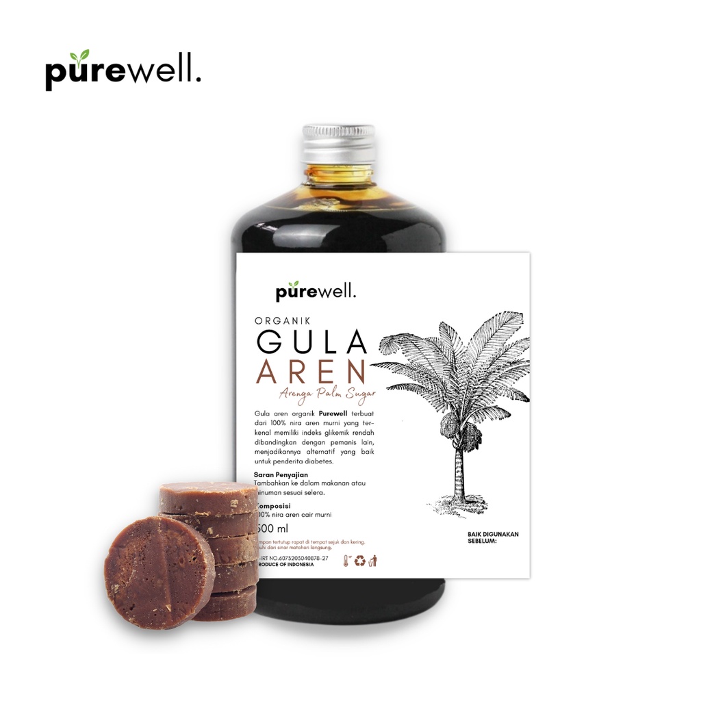 Gula aren organik Purewell terbuat dari 100% nira aren murni yang terkenal memiliki indeks glikemik rendah dibandingkan dengan pemanis lain, menjadikannya alternatif yang baik untuk penderita diabetes.
