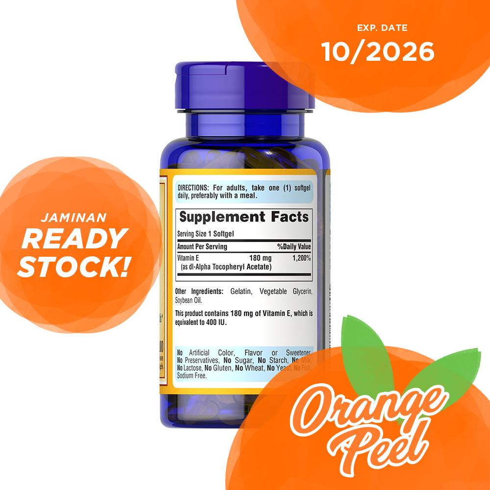 Puritan Vitamin E 400 IU 180 / 268 mg 100% Natural w/ d-Alpha Tocopheryl 50 100 SoftgelsPuritan Vitamin E 400 IU 180 / 268 mg 100% Natural w/ d-Alpha Tocopheryl 50 100 SoftgelsPuritan Vitamin E 400 IU 180 / 268 mg 100% Natural w/ d-Alpha Tocopheryl 50 100 Softgels