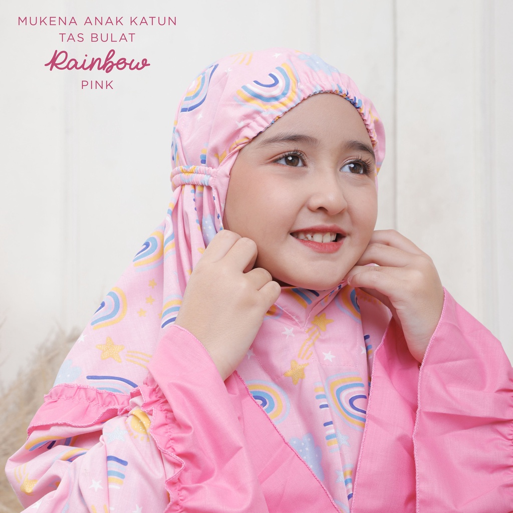 Detail PUSAT MUKENA TASIK - MUKENA ANAK KATUN MOTIF RAINBOW PINK (TAS BULAT & TAS SAJADAH)