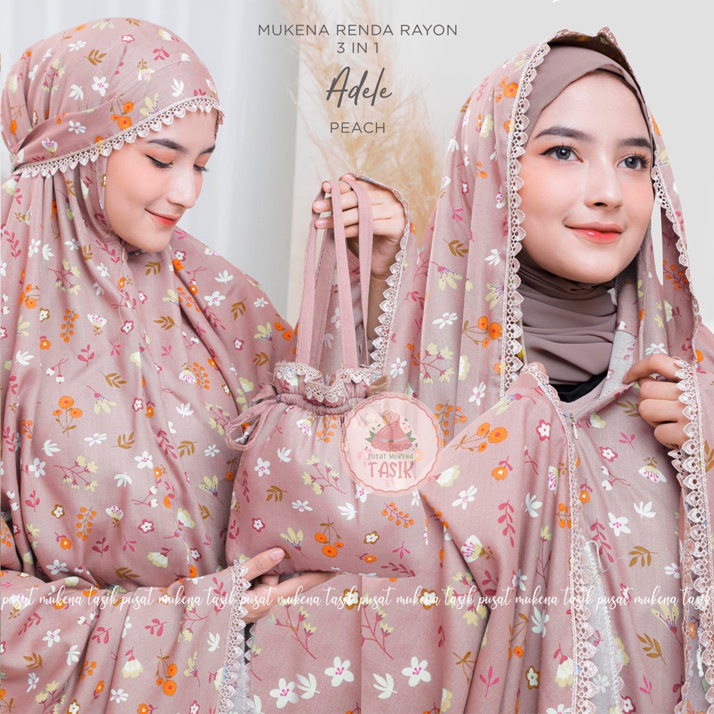 MUKENA RENDA DEWASA 3 IN 1 MOTIF ADELE MUKENA : ATASAN + BAWAHAN BAHAN : RAYON JANGER BERAT : 600 GRAM