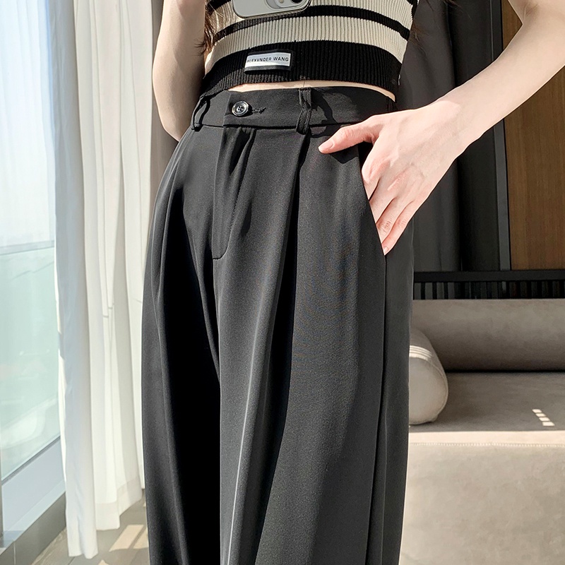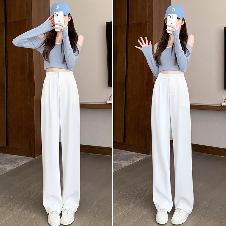 Detail Putih / Hitam Highwaist Loose Kulot Celana Panjang Kasual Wanita Kekinian