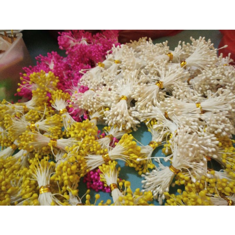 Hobi & Koleksi > Perlengkapan Menjahit > Putik Sari,Putik Bunga Plastik,Putik Biasa/putik sari kain setoking untuk bunga / putik bunga stoking / putik benang sari