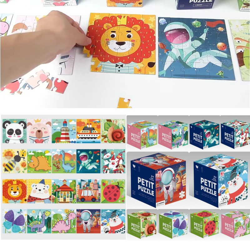 Kartun Pendidikan Hewan Kertas 24pcs Puzzle Paper Jigsaw Craetive Animal Scenery Series Toys Cartoon 24pcs Mainan Mainan Kertas 24pcs