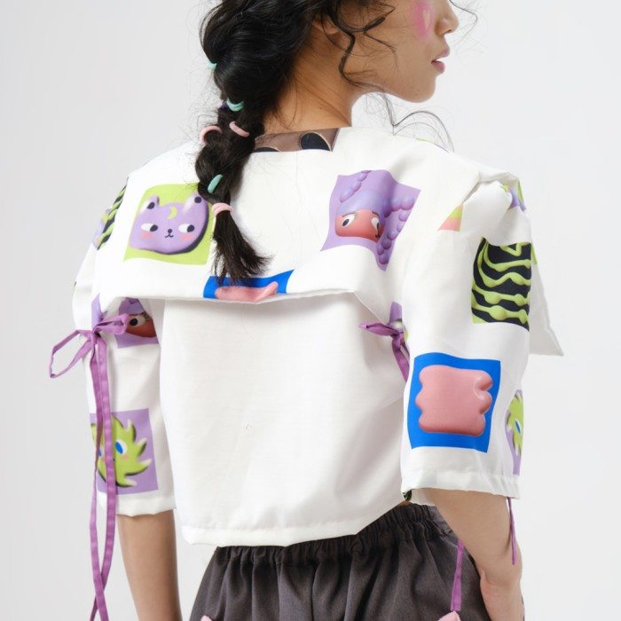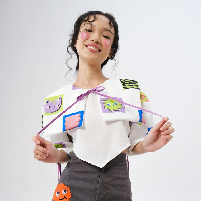 Ummm this is a collar top that wins it all. Versatile enough to be worn with anything but also a statement piece with Owi Liunic signature artworks on it. Cuteness overload!