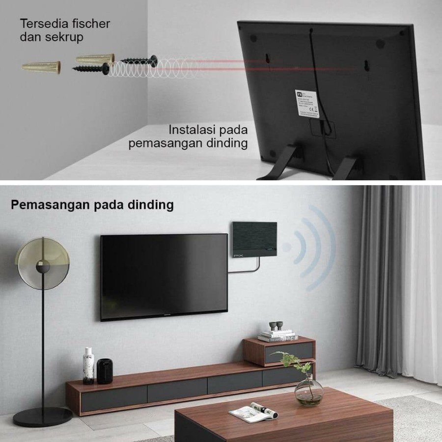 Note : Penggunaan antena wajib ke TV DIGITAL ( support DVB-T2 ), jika belum support maka wajib pakai STB. Supportnya dapat dicek di web kominfo / dari spek TV
