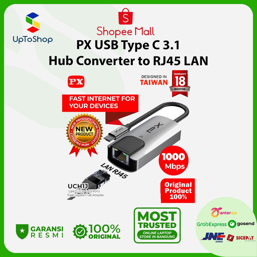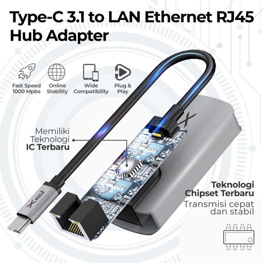 Detail PX UCH1J USB Hub Type C 3.1 Converter to Gigabit RJ45 LAN 1000 Mbps