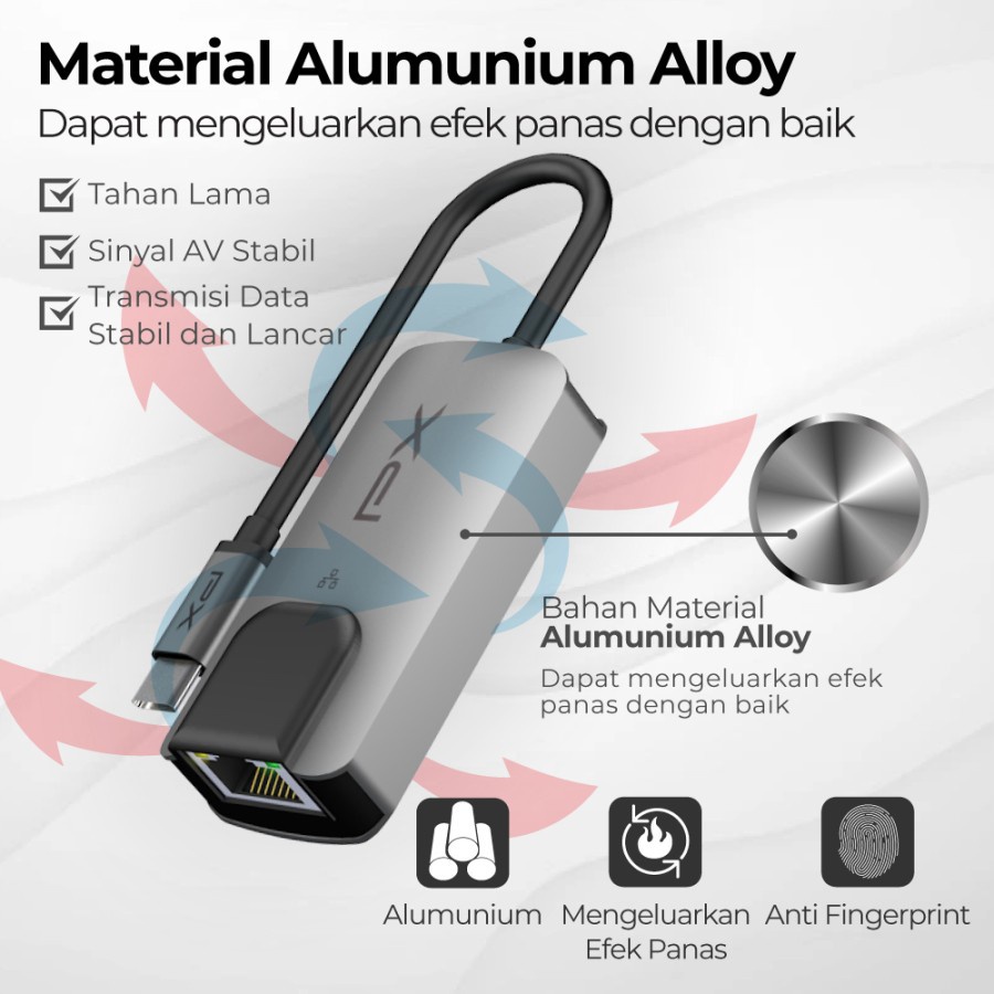SPESIFIKASI Merek : PX Model : UCH1J Material : Alumunium Alloy Warna : Space Grey Panjang Kabel : 15 cm Input : USB Type C 3.1, Thunderbolt 3 Output : LAN RJ45 Dimensi Produk : 15 cm