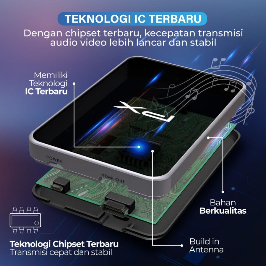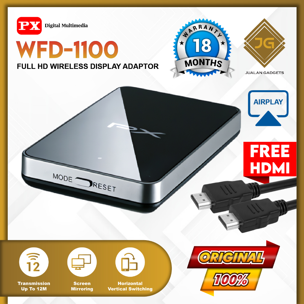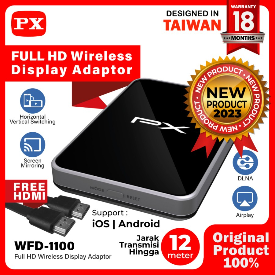 Merek : PX Model Produk : WFD-1100 Wifi : 802.11 a/b/g/n/ac Frequency : 2.4 G + 5G Media Processor : H.264 DC power : 5V/2A Resolution : 1080p / 60 Hz Power : Micro USB