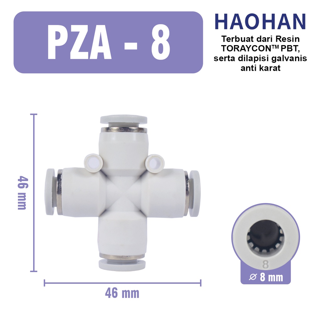 Detail PZA Fitting Cross Tee Pneumatic Slip Lock 4 Way Type MPZA PZA