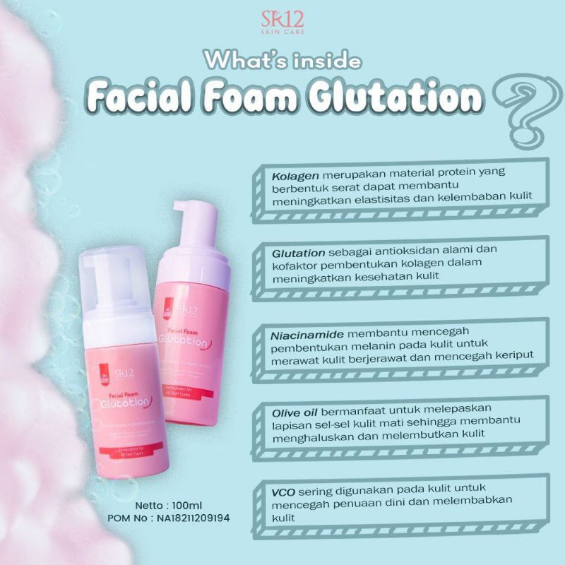 Kelebihan Facial Form Glutation SR12 : • Tekstur dan formula ringan dapat digunakan setiap hari • Sediaan berbentuk foam cocok untuk semua jenis kulit • Mengandung Glutathion dan Collagen untuk meningkatkan keremajaan kulit • Mengandung Niacinamide untuk mencerahkan kulit wajah • Kandungan Minyak zaitun dan Minyak kelapa sebagai antioksidan alami kulit • Melembutkan dan menghaluskan kulit wajah.
