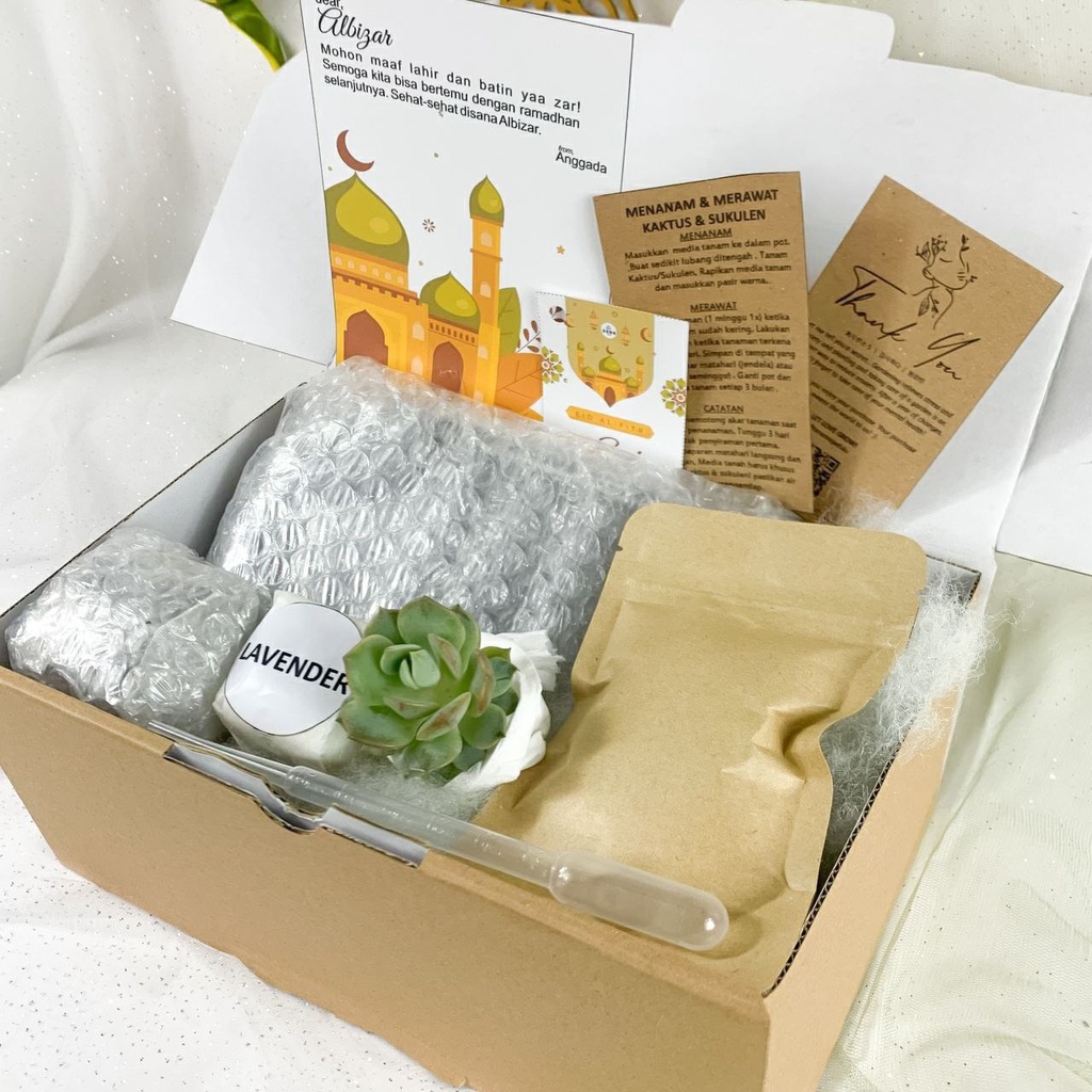 Include : - Candle bubble varian Lavender , Vanilla - Plant; custom variant - Pot concrete hexagon 5x6 cm - Tray concrete Oval 9,5x18x1,5 cm - Custom card
