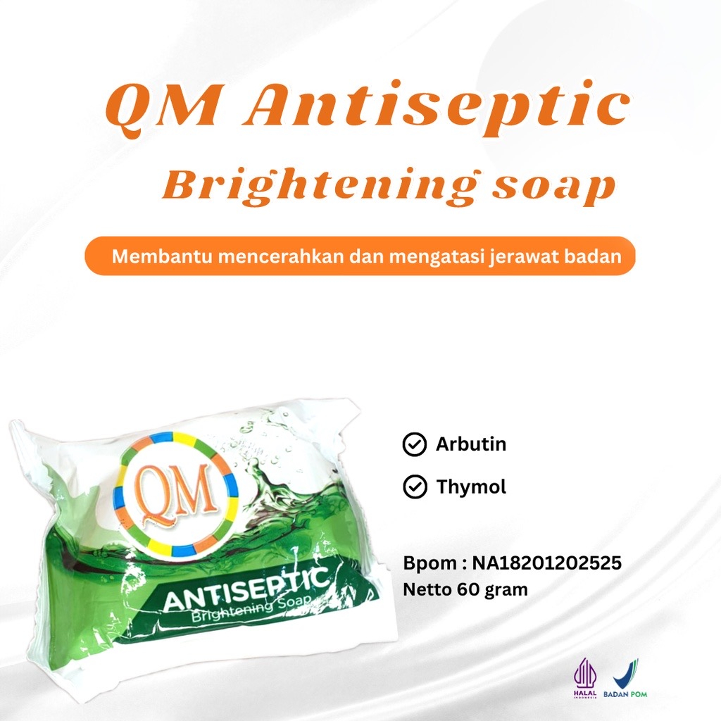 kegunaaan sabun QM ini adalah : - membantu proses penyembuhan jerawat - mencerahkan dan melembapkan kulit - menghilangkan bekas jerawat dan flek - mengecilkan pori pori dan menghaluskan kulit - membuat wajah kencang dan glowing - membantu exfolasi sel kulit mati