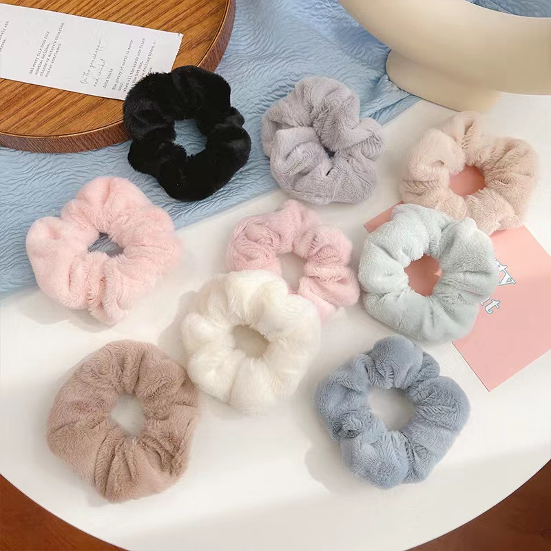 Ikat Rambut Scrunchie model bulu adalah ikat cepol rambut yang dapat menghasilkan tatanan rambut lebih rapi dan kokoh