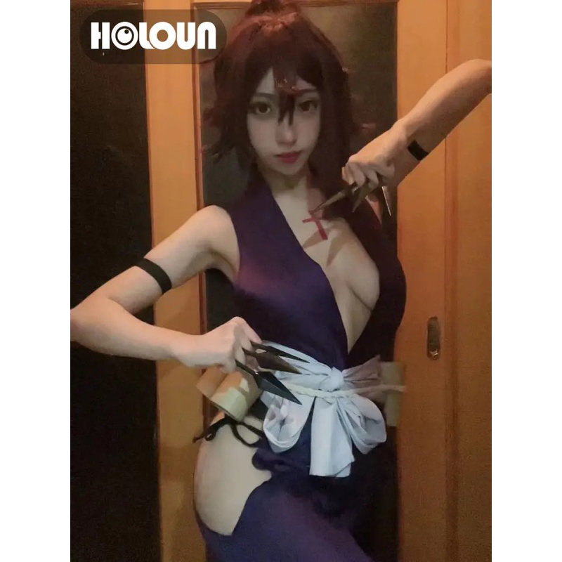 HOLOUN Jigoku Raku Hell's Paradise Anime Yuzuriha kostum Cosplay Wig pesta karnaval seragam ungu jaring mawar sintetis