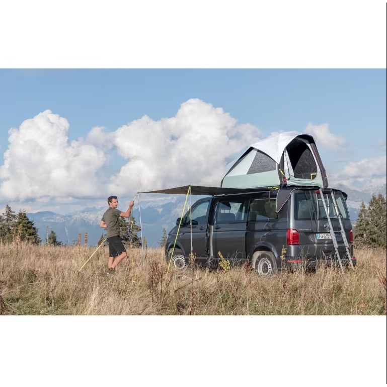 DESKRIPSI PRODUK : - Pemasangan/Pembongkaran Yang Mudah: Siapkan dan bongkar dalam waktu kurang dari 10 menit berkat struktur tiupnya. - Kapasitas: Kamar Tidur (L) 130 X (W) 210 x (T) 93 cm Kasur 130 X 205 cm Terpal 193 x 190cm. - Transportasi Mudah: Dimensi tas : 130 x 37 x 32 cm L. Berat : 23,6 kg termasuk tangga 7,2 kg. - Pengurangan Panas: Flysheet, ventilasi udara mekanis, kain Segar & Hitam untuk tidur malam yang nyenyak. - Tahan Angin: Tahan angin 60 km/j: divalidasi di terowongan angin. - Kepekatan: Kain eksterior yang dipatenkan Segar & Hitam: kegelapan 99% bahkan di siang hari bolong. - Tahan Air: Kolom air (Schmerber): Flysheet > 2000 mm. - Kesesuaian: Lihat bagan kompatibilitas model. Kit sekrup agar sesuai dengan van Anda.