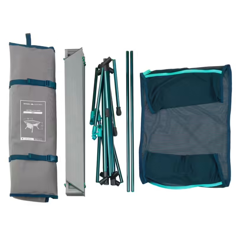 Detail QUECHUA Meja Lipat Kemah Ringkas Mudah Dibuka/Tutup