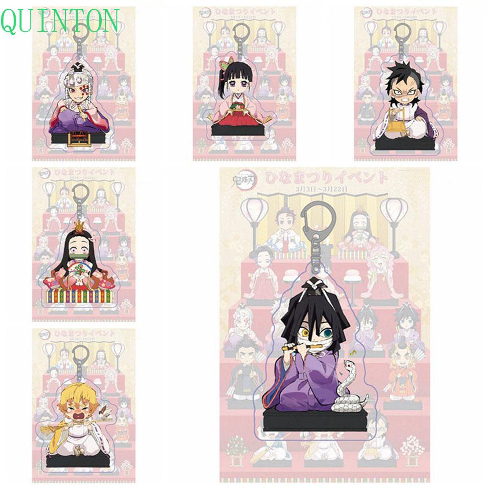 Detail QUINTON Gantungan Kunci Demon Slayer Tanjirou Nezuko Kimetsu No Yaiba Figurine Model Scultures Kyoujurou Key Ring